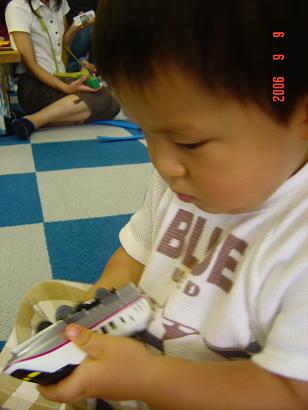 わが家で2回目のおもちゃ王国へ行ってきました前回は大晦日で寒~い日に行って来たので人が少なかったけどこの日は過ごしやすい気候になってきたせいもあってけっこうたくさんの家族連れでにぎわってました。着いてまず向かったのは、プラレールのパビリオン。もちろん大喜びでした。パビリオンの中にはプラレール好きの子どもでいっぱい。最初はたくさんあった新幹線でお殿さんも遊んでたけど数少ないトーマスのプラレールは、取り合いで誰かがそれで遊んでいると、遊びたい他の子どもがその子の周りで遊び終わるのを虎視眈々と眺めてて見ててかなりこわかった…汗 お殿さんも虎視眈々と狙ってたから、遊び終わった子から旦那さんがすかさず奪ってくれました(笑)それからはかなり長い間トーマスのプラレールで遊んでたんやけど今度は自分が虎視眈々と狙われる羽目になり何度も奪い取られそうになっては、半泣きになりながら「お殿たんの~!!」と必死でトーマスを守ってました(笑)ほんまトーマスってすごいよな~プラレールもすごいけどそのすごいプラレール+トーマスの威力ったら…子供の世界もなかなかすごいもんがあるな。。。まさしく弱肉強食の世界やわ( ̄ー ̄;1時間くらいそこにいたかなぁいつまでたっても終わりそうに無いので、嫌がるお殿さんを引っぺがして外に。次はお殿さんが行きたいと言うので、池の周りを走る汽車乗り場へ。一緒に乗りました。気持ちよかったよ~気に入ったのか超ご機嫌。普段そんなことあんまりしないのに自分からいろんな人や人形にバイバーイと手をふってました。でも一瞬で終わってしまった汽車…終点に到着してみんな降りてるのに一人だけ嫌や~とエビゾリで降りようとしなかったお殿さん…危うく溝に足がはまりかけました汽車の余韻覚めやらぬお殿さんのご機嫌をとろうと次に向かったのは、本日のメインイベント級(笑)お殿さんが大好きなトーマスの汽車~!!(ほんま電車とか汽車ばっかりやな…)トーマスに乗れたらよかったけど、並んだ順番でパーシーになってしまったお殿さんたち。でもそれなりに嬉しかったみたい。これまたさっきの汽車同様、一瞬で終わり。当然お殿さんがこんなんで満足するはずがありません…降りてから他の所に行こうとすると全身で抵抗。。。仕方なくもう1回乗ることにしました。今度は無事にトーマスに乗れて満面の笑み!!旦那さんはちょっと嫌そうです…(笑)カメラに向かってピースするほど喜んでました。ここでももちろんまだ乗りたいと叫ぶお殿さんを引っぺがす羽目になりましたよ。ほんまどんだけ好きやねん、トーマスのこと…この人、寝言でもトーマスとかパーシーとか言ったり電車取られて「おとのたんの~!!」とか言いながら寝てるのにマジ泣きしたりしますからね。四六時中トーマスと新幹線のこと、考えてるようです。私にはそのよさが全くもって理解できませんがね…その後は木のおもちゃ館に行ったけどここでもまた汽車のレールセットで遊んでました(汗(ここにきてまでレールセットで遊んでたら家にいるのと変わらへんやんか~)お殿さんは汽車をありったけ連結させてそれを動かすのが好きなんやけどここでも虎視眈々と他の子の汽車を狙っては手中に収めて静かに手持ちの汽車を増やしていってました。で、5両くらい集めてからご機嫌に遊ぼうとしてたらまた他の子にも虎視眈々と狙われてとられそうになったら号泣しながら守ってました(´▽`;) この状況じゃ、そりゃ心穏やかに遊ぶのは難しいわなぁ(笑)昼寝もせず、トーマス・汽車三昧でさぞかし楽しかったんやろな~帰りの車では1分も経たずに撃沈してたお殿さん。また天気のいい日に連れてってあげようっと。でも…どこまで続くんやろ、この電車好きって…考えると、こわいなぁ~