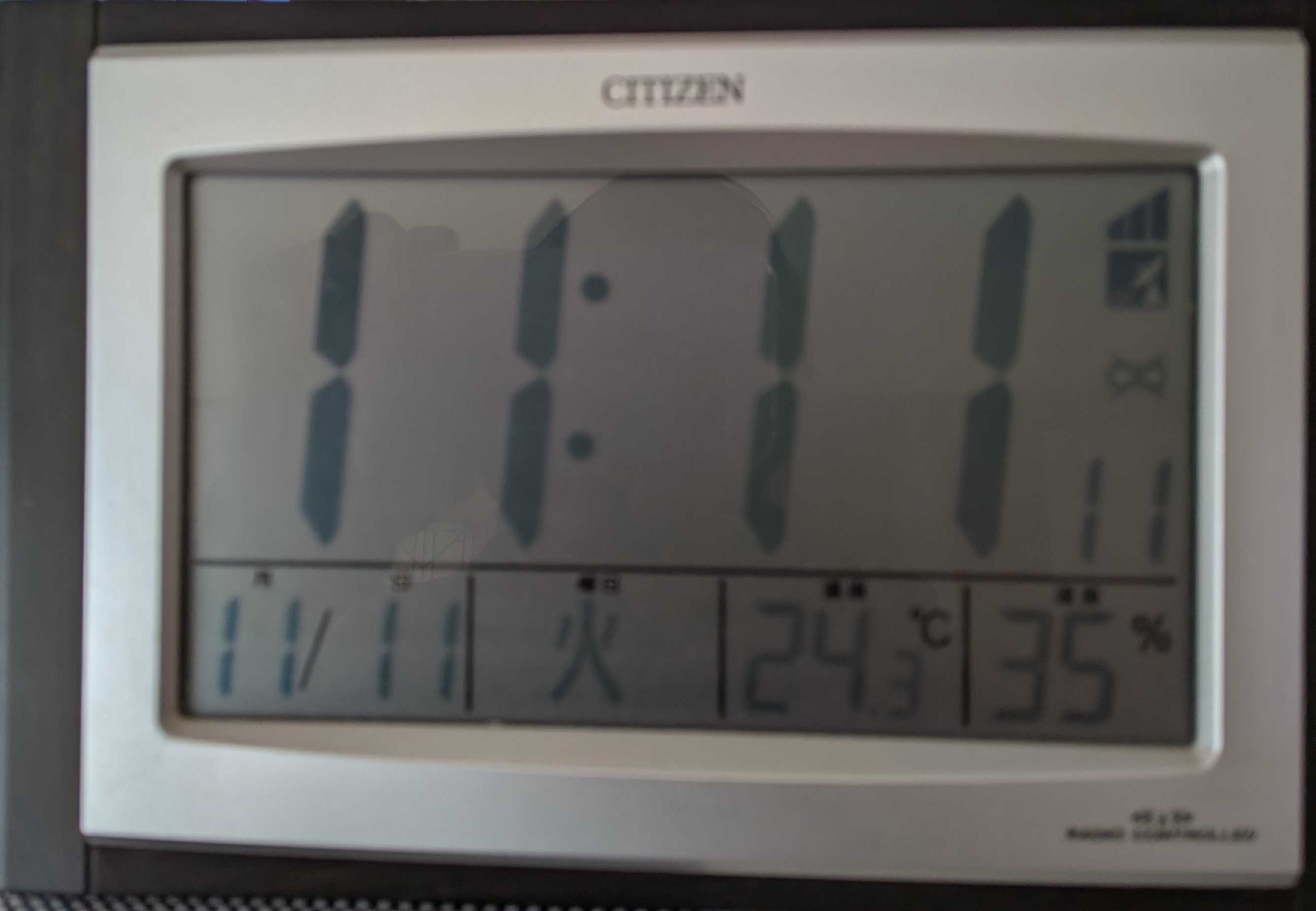 朝も早よから 保護者が 今日は大事な日だと騒いでいましたあの人の大事なことって 別に私にとっては”ふんにゃ~~”なんやけどでも まぁ ”なんのこと?”と聞いてみました「今日は11月11日や」と うれしそうそれがどうした、、ですが「今日の 11月11日11時11分11秒 に時計を見る それが大事や 忘れんと 時計をみるんやで」とこの瞬間が大事だと一人で騒いでいますそら 1年に1回やから そうかもしれんけど あと2か月したら 1月1日もあるし 1月11日もあるやん とでも 今日が大事や、、言い切ります宣言するようなものかいなぁ、と 思いましたがまぁまぁ 楽しみにしときます、、と返事したのですが保護者は 10時前に 散歩に出かけました帰りに 郵便局によって オアシスに寄ってくると言ってます大丈夫かな?と気になったのですがまぁ あの人はしっかりしてるから、、と11時10分を過ぎましたが帰ってきませんなにしてるんかな、、あ~~~ぁ 間に合いません が 過ぎました1分、2分 3分経った頃に帰ってきました「父さん アカンやん」というと「途中で気がついたけど もう間に合わんかった 見たんか?」と 聞いてくるので「はい 写真も撮ったよ」と「まぁ よろしいやん それでええねん だがしかし 計算通りにはいかんもんやなぁ、、残念」と私も な~~~んかなぁ、、、 がんばって その瞬間に集中って 思わされてそして その時を迎えたけど張本人は 見ずじまい笑ってしまいます 今日は 平和ですねぇ