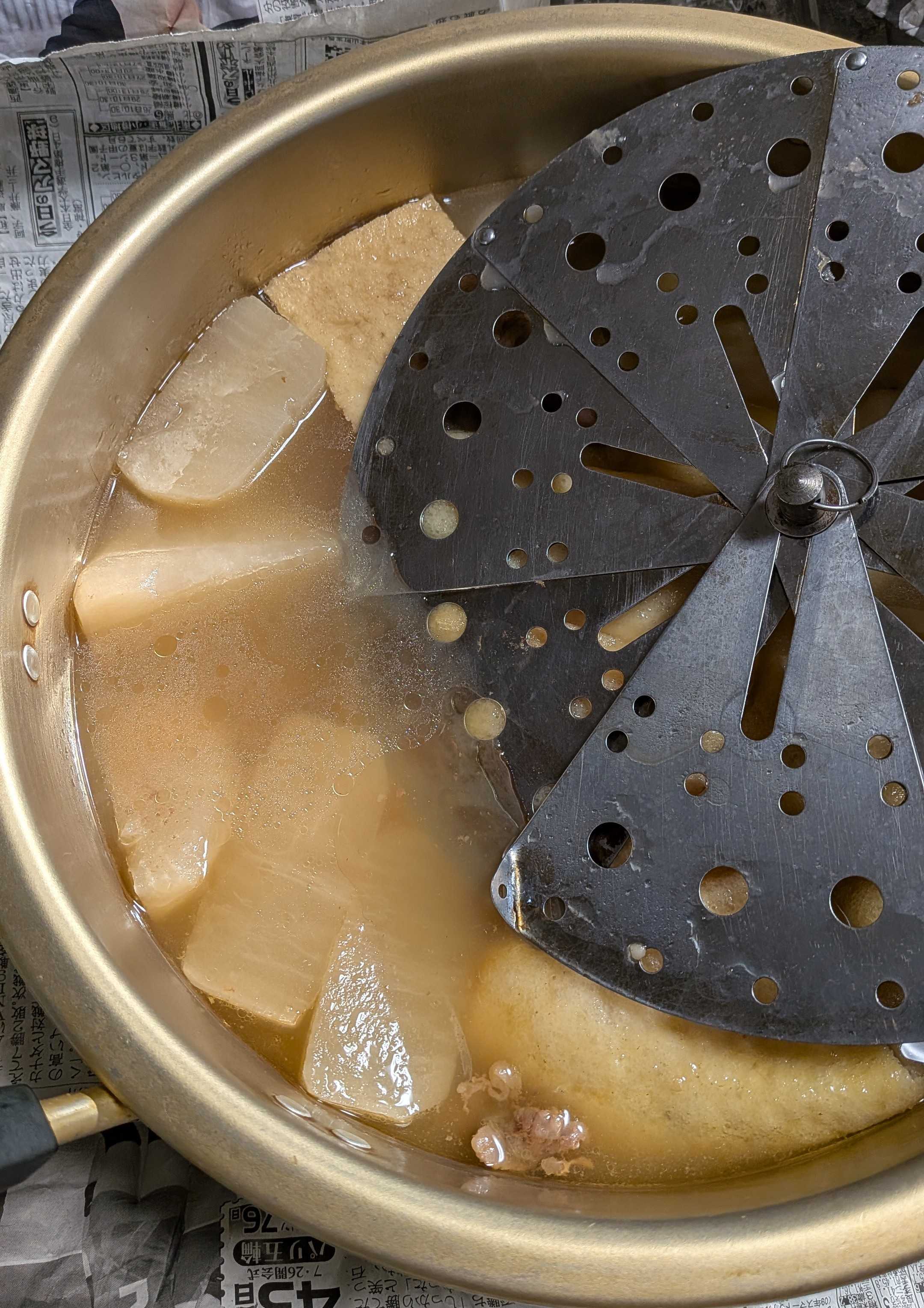 昨日は 早々と おでんの出番となりました炊き上がると 鍋を新聞紙で包んでそれを またバスタオルで くるんで じっくり ゆっくり 一晩おきますしっかり 味は しみこんでます仕切り版をいれた鍋に移していざ 実食保護者の大好きなすじ肉めっちゃ 味がシュンで 柔らかくなっててOK薄揚げにお餅を入れ込んだ餅巾着も OKデぇ~~~コンも 柔らかく 味もしっかり OKOK牧場でござんすビックリするくらい 食べましたがまだあるので 今日も おでんでやんす二晩続きのおでんは 楽ちんですところでおでんにつきものの 辛子ですが私は カンに入ったからしを練って使いたいのですが保護者は チューブに入ったものを買ってきました”辛子は からしや、 みんな一緒や” と言うんですまぁ そう言われれば そうなんやなぁ、、で 食べはじめると「なんか ちゃうなぁ、、」と言ってました”父さん ひとつ勉強しましたね”と言うとめずらしく「うん」と返事を良かったぁ、良かった 吉永小百合です