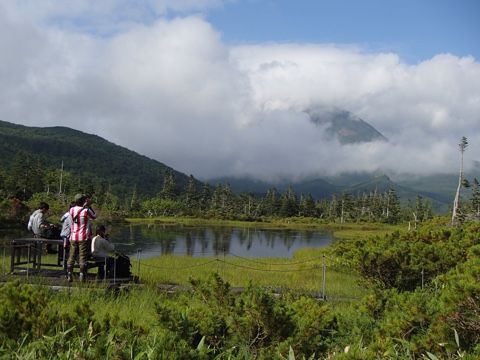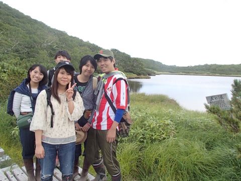 マッコウクジラを見て来たKさん、Hさん姉弟とI夫婦で羅臼湖へ