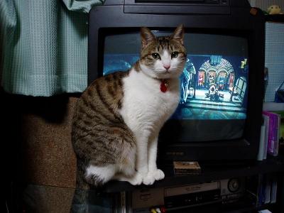 私が自分の部屋で「ロードオブザリング」を見ていた時。今までテレビの上に寝ていたのに・・・フッとテレビの前にちょこんと座りだした。今までこんなことなかったので・・・ちょっとビックリ・・・数分後、どけないので写真を撮ることに(笑)めちゃめちゃカメラ目線 (。・x・)ゝ何処見てるのか分からない視線・・・ う~む・・・トラに「ジャマだよ」「どけて」「見えないよ~」と連呼。そしたら下を向いちゃった(笑)怒られてるのは分かっているらしい・・・猫ってかまって欲しい時、ジャマしてきますよね?雑誌を見てたら、雑誌の上に乗ってきたり。パソコンしてると、キーボードの上に乗ってきたり(これ困ります・・・)感情豊かなトラピでした(笑)
