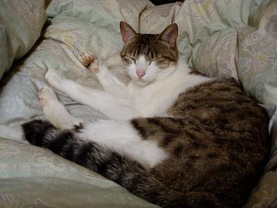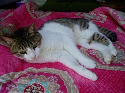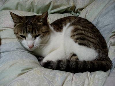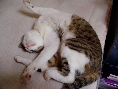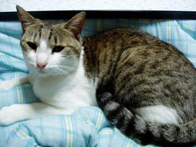 昨日の夕方、病院へ行きました。さすがに具合が悪く・・・早く治すためには病院の薬の方が何だか効く感じがして。5種類の薬をもらってきました・・・。無くなるまで飲んで下さいとのこと。かなり大量にあるんですけど・・・でもその薬のお陰なのか・・・昨日よりはだいぶ良くなりました。でも、今日は安静にして寝てようと思います。寝ていると・・・トラがやってきて・・・私の布団の上に寝てくれました。夕べは私がゆっくり寝たかったのと、トラにうつったりしたらいやだなぁって思い(猫にうつるのかなぁ?)別々に。やっぱりそばにいてくれると安心しますねこの調子だと明日には復活できるかな コメントのお返事などしていなくてすみません体調が良くなったらしますね。