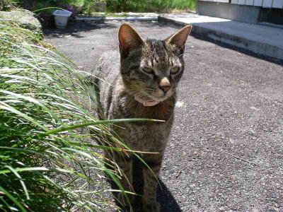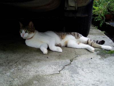 この写真は今日のものではなく・・・数日前に撮ったものです。主役はクロ!!この前、ちょっと怖かったのでと、言っても今日のも微妙(笑) 「ふう・・・今日も暑いニャ・・・」ダルダル・・・「お、ここで一休みしていくかにゃ・・・」どっこらせっと・・・「少し涼しいかにゃ・・・」ふう・・・あ、あんた・・・オヤジくさ!!もっと可愛い顔しておくれ~(><)と願う飼い主でした