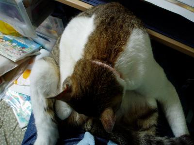 トラは寂しがり屋さんみたいです・・・それは家族に対しては違うらしく・・・例えば私が家を空けて・・・しばらくして帰って来ると2回へ上がってきて私の膝の上へ。しかし・・・これはちょっと・・・かなり必死です人の膝の上でここまで毛づくろいしちゃうかなぁ(笑)ちょっとトラの名前を呼んでみました。そしたら・・・何か言った??みたいな顔されちゃいました~(涙)必死に毛づくろいもいいけど、ちょっと場所を考えてね、トラ。※ちなみに夕方~はトラがお外で遊んでるみたいです。猫は気まぐれだからその日によりますけど(´▽`*)アハハ