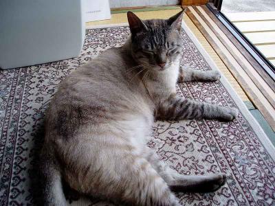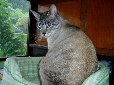 今日は梅雨空何だか肌寒いみたい。自分の部屋でコタツに入っていると・・・トラがやってきました。そして・・・中に入りたいのかな?と思って、中に入れてやると・・・すぐ出てきちゃったパソコン用のイスに座って甘えモード・・・無視してたら(笑)コタツに入っていた私の膝の上に。え・・・すごく狭いのに~~と思いながら、すき間をあけてあげました。「ママ、私ここにするの」「ここで眠ることにしたの、いいでしょ?」しばらくすると・・・「眠く・・・なったの・・・」ぐ~はい熟睡です(笑)そのアップでもどうぞ~~。トラがいたら私何も出来ないじゃんまぁしばらくこのままでいてあげましたけど暖かいからかなぁ・・・