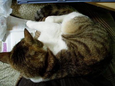 トラのお気に入り・・・それはいつも変わります(笑)今日はここ暖かくなってからはあまり乗ってこないかなぁ冬の頃よりは・・・でもたまに乗ってきてくれるのは嬉しいけれどパソコンするにはジャマだけど、やっぱり嬉しいトラのぬくもりむこうむいて寝てるので・・・後頭部を撮ってみましたきゃわゆい(笑)