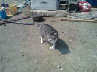 東日本大震災から1カ月 やっとドクターストップが解けたので実家である宮城へいってきました以下 私情を交えつつ だいたい時系列で4/11 23:50 新宿 キラキラ号乗車4/12 5:30 仙台着直行バス(臨時便)乗り場へ移動 始発便はまだこっちは予約不可 先着順なので ひたすら並ぶ前3人組 and 後ろ2人組の大学生風boysは 装備をみるとボランティアらしいありがとう m(_ _)m後ろをみると 長い長い列6:30 実家方面行きバス乗車補助椅子までで乗れない人がいっぱいいました ごめんね比較的内陸部を通っているせいか建物の大きな損壊は見られないけど「災害派遣」という名札をつけた自衛隊の大型車が何台も走っていて非常事態とわかります所属をみると 旅団とか 偵察隊とか ミサイルなんとかとか もう片っ端からかき集めたように 覚えきれないくらい色々8:00 バス下車 「着いたよ~ 歩いてく」ぽてぽて徒歩で自宅へ道は土っぽいもののキレイ・・・だったけど 自宅が近づくにつれ 道の端に寄せられている畳やガレキの量が増えていきますそして 交通整理のおまわりさん(山梨県警だった)とヘドロも増えてきました 9:00 自宅着 建て替え後 初めてみた実家はブルーシートかぶってました庭や畑の土はヘドロが乾きひび割れてます大きくひび割れ歪んだ玄関の階段おかんの第一声「どっから歩いてきたの?!」←「遅い!!」の意だってぇ スーツケース重かったんだもぉん(´・ω・`)物資いっぱい持ってきたんだよぉ?兄貴は日焼けと無精ひげ「人相悪りぃ~」栃木に住む母方の叔父2号も手伝いにきてくれていました・・・が数日まえ階段から転落し肋骨を骨折現在は軽作業担当庭には本家の物置から拝借したというダルマストーブ薪は流れてきた廃材が山ほどありますおかん「油 吸ってるから よく燃えるのよぉ」 ・・・はぁ さいざんすかでかい鍋を2つかけて 食器を煮沸消毒してましたなにはともあれ じじばばとおとんに挨拶しようと仏間へ遺影はアウトだったけどお位牌無事でした兄貴がとっさに掴んで2階に持って上がったそうで生前はおとんと衝突してばっかりだったのに・・・と こっそり兄貴を見直してみたり室内は基礎が逝って床がナナメっているので軽くめまいがセカセカと働くおかんを眺めつつ 何をしたらいいかワカラナイだって 10代で家を出て独立してからカレコレ20数年 遠慮はないものの最早「よそのうち」家の中のことは手が出せないので 薪割りや庭のゴミ拾いをしてみる大きいゴミは 兄や叔父達によって既に撤去済み木くず 紙くず 鉄くず ビニールや プラスチック片が地面を覆っているビニールをはがすと まだ乾いていないまっ黒なヘドロが顔を出すくっちゃい木はいずれ土に還るだろうとプラスチックを中心に手当たりしだいに拾っては道端に積み上げられたガレキのをさらに大きくしてゆくでも キリがない白モクレンは生き残ったらしい 花が開きかけていた隣のサクラは蕾を付けた気配がない彼女の枝には電気コードを巻くアレとバスマジックリンが引っ掛かっていた撮影のあと登って外しましたおとんが 気まぐれに あちこちに植えたツツジは大半が根っこから抜けて転がっていました未だ行方不明の父方の叔父が「これは俺の木だから枯らすなよ」と植たという木は生き残りました「遺言になっちまったな」と兄貴がぽつり津波で流されてきた車 この中で二人が亡くなったそうだ 「早く家の中へ」と呼んだが「ばぁさんを置いていけない」と残ったそうで 水が迫っていて助けられなかった と母と兄の苦い苦い記憶それと 店子さんの一人が亡くなったそうだ 家族は無事だったものの 我が家の敷地で3人の方が亡くなった庭のゴミ拾いをしていたら 紙くずの中から1万円札がっおかんがヘドロを洗い流し乾かして「ほれ」と寄越したけど喜ぶ気になれず 亡くなった方たちの供養にあてるよう託してみたテスト そうこうしているうちにゃ~~~~んという 顔に似合わず甲高くかわいい声とともに ミースケさん やっとご登場午前中ちょっと顔を見せる以外 一日の大半を外で過ごしているらしい体重8.5kgトドではありません 猫ですよ ね こつづく