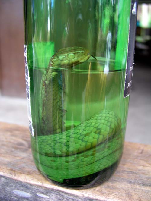 メガネをとって緑色のビンの中をよーく見るとヘビ?~!