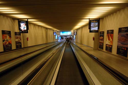 到着後、マヨルカ空港の長~い、動く歩道に乗りながら荷物受け取りのターンテーブルへ!