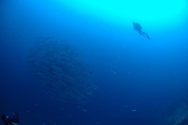 帰ってから解ったのですが、チャネルはバラクーダよりもマダラトビエイの群れが