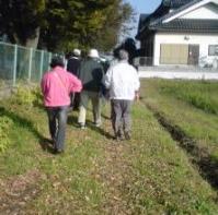 環境のメンバーでのお散歩! これは勉強約束の時間を忘れないようにと・・気を使いましたぁ二度忘れているからいつも歩かない所を歩いてました・・ここって歩けるのかなぁ、道があるの?なんていいながら・・ 川から川を緑でつなごうという考えなのです~本当は直線が理想です。福祉にも環境にもと、いう事で、車椅子の方もこれるようにと考えながら・・・横断歩道、交差点もあり、家も邪魔、この畑邪魔なんて言いたい放題をいいながらの・・ メンバーで顔を合わせて笑ちゃいましたぁ市の土地だったらいいけど、買収するとお金もかかるしね・・●●さんこの畑買占めちゃいなぁなんて言われている方もいたり・・今だったら安いね・・最後にはプールの場所でお茶して外には夕日が綺麗で思わず 拝んでいた方も