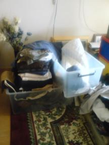 日曜日の夜に”木枯らし”が吹き出して・・今まである物を着ていたけど、それでは間に合わなくなりました 寒いよぉ朝、孫ちゃんを送り出してから急いで本格的に”衣替え"に取りかかりました。家の中はごじゃごじゃ、足の踏み場もない位に画像は少し片付けた所を・・ 衣装ケースをあちらこちらに移動。狭い家の中だけど。そのせいか腰が痛いよぉ~そこにバザー用の物をあげると言っていたので、仲間が取りにきました。トロも休憩時間、お茶とお喋りして、お昼を食べて帰ったけど。娘の所に冷凍食品を取りに行くと言ってあったので、慌てて行きました 沢山の物を有難う!アイスも入っていたけど解けてなかった寒いからかなぁ 凄いよ40分ぐらいかな。家の中も片付いてないのです。少しづつしようと・・パジャマを干していたら風が吹いてメダカさんの池に”ぽちゃ”してましたぁパジャマを池から出して見たけど、メダカが入っていたがどうかは?? 入っていたら可愛そう