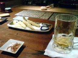午前中は会議です。あと一ヶ月の間にまとめをしないといけません。その準備に各分科会は追われている事でしょう。トロ達もそうです~お昼には仲間達とイタリアンに行きました。そこで来月の旅行の打ち合わせを。お喋りとお腹がすいていたせいか撮るのを忘れたほどです。 失敗来月は楽しみが増えました。その後胃カメラをとった時に調子が悪くなったと言う彼女の所に寄って。始めはテンション低かったけど帰りがけには上がって良かったですトロも胃カメラをやったけど、何でもなかったのはラッキーでしたね。彼女3回も管を入れたりして、調子が悪くなって。”もうろうと車”で帰ったと聞いて、そちらの方が驚きました帰ったとたん、娘から電話が入り、”練馬で食べているので来る”と誘われてそのまま駅に直行。バスの中から携帯で連絡を取り合って。今は携帯があるので便利です。なかったらどうなりますか?前回も行こうとしたけど満席で入れなかったところでした。カウンターしかなくって・・入ってまもなくお待ちが何人もっでした。 混んでいるここはお蕎麦屋さんですがお子様は入れなくって・・何歳かからは聞いてませんが・・大人の雰囲気で静かです。トイレの帰りに店内を見回して・・お座敷もあっていい雰囲気です。 名前も176です。おかしい名前ですね。何でも言われは郵便番号と同じですって。 練馬は176でしたぁ単純かなぁお店に入る時に”にんにくの香り”が漂って、外にです。それに誘われて入る方も多いかもね。娘に聞いたら”今日のお勧め”でしょう。早速それを注文して・・スタミナをつけましたぁ旬のお野菜の天ぷらもたら目の天麩羅も食べたかったけど、終って残念。 ウドの天麩羅、しらこのてんぷらと・・お皿の飾りつけはフレンチ?お蕎麦屋さんだから、蕎麦焼酎を飲んでボトル一本開けて。その前に娘達はふぐのコースを食べて飲んできた着たばかりだと・・若いからかしら??ここでも食べて飲んで・・ 驚きです