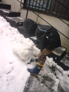 土曜日夕方からの雪が積もっていた 雪=嫌だって我家の前が坂道なのです。階段の方にお隣さんの屋根があり、雪が落ちるのです、階段は使えなくなります。だから坂道を雪かきしないとあがるのに、大変なのです朝から孫ちゃんと息子と3人で雪かきをして汗をかきました近所の方々も出てきて、息子は普段挨拶程度、今回はお喋りしながら・・それが良かったかも。Kさんの家は誰も?今回は雪ダルマが出来ません。固まりませんでした。お天気も良くてかくそばから解けていたような?でも日陰は凍っていましたね。借りている駐車場の日陰が凍って、息子は氷の所をプラスチックのちりとりの角で叩いていて、割れてしまったり。トロの家のちりとりです。 駄目だよね孫ちゃんと息子は雪合戦もしたり、寝転んだり・・ 楽しんでいた模様です まごちゃんの声がきゃきゃと夜には道路も雪は解けてしまいました。星もでて!