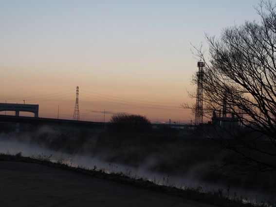 「初日の出」を見るために・・ 合流地に集合!暗いうちから・・準備です~会員さんも集まり!ご近所の方々も・・ 多くいらしていたような?!年々多くなってきているような?今年は寒くなく・・穏やかな元日でした!川霧がすごく・・霜もおりて! 真っ白!太陽って・・出ると早いです~見るみるうちに・・昇りました 今年もよろしくお願い致します~