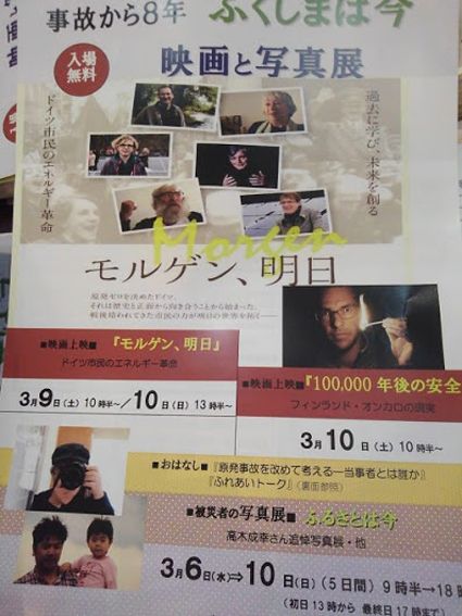 6日から始まった・・『ふくしまは今』の写真展、映画は終わりました。やっとです・・役員さんより・・5日間で700名いらしたと連絡がありまぁ ホットかな?