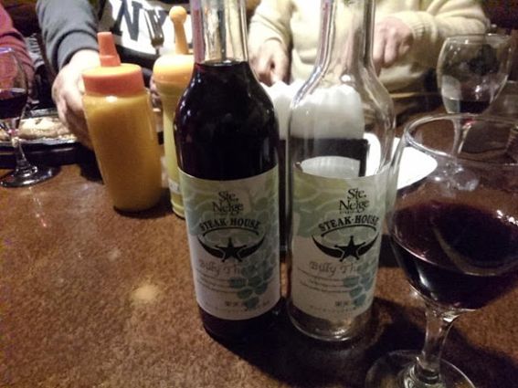 『ビリーザキット』です~ここは夜6時から空かないお店です~もう先着のお客さんはいましたよ。5時30分でね!お仲間さん方と行ってきました。ワインも2本!トロが殆ど一本は開けた!ここに来ると食べるのは決まってます~500gのハンバーグを!その後ガストでお喋り~甘いものも食べ!別腹と言いながら・・今朝は超体重が増えた! あらら