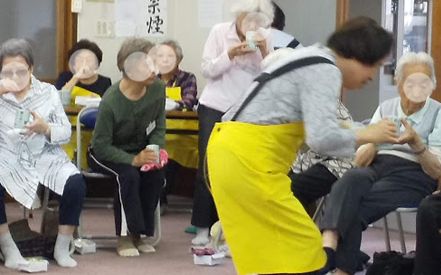 幸町『うららの会』で・・今回は・・『座りっぱなしは駄目』のテーマです!1時間に一度は立って歩きなさい。本当はCMタイムに立った方がいいのでは?一寸の時間に何か出来ますよ。東洋大学の神野先生も・・そうおっしゃってます~脳トレしている所! 健康寿命を延ばしましょう