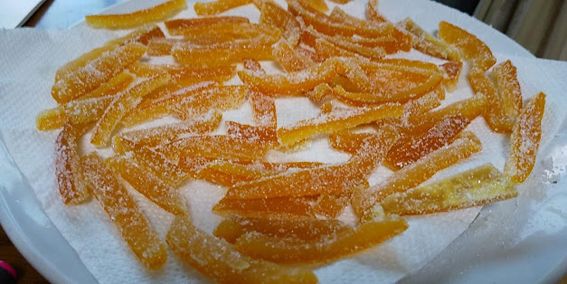 二個戴いて・・皮はピールにして・・実の方は超酸っぱいというので・・ケーキでお砂糖を沢山いれたが・・やはり酸っぱい~ でも食べたよ