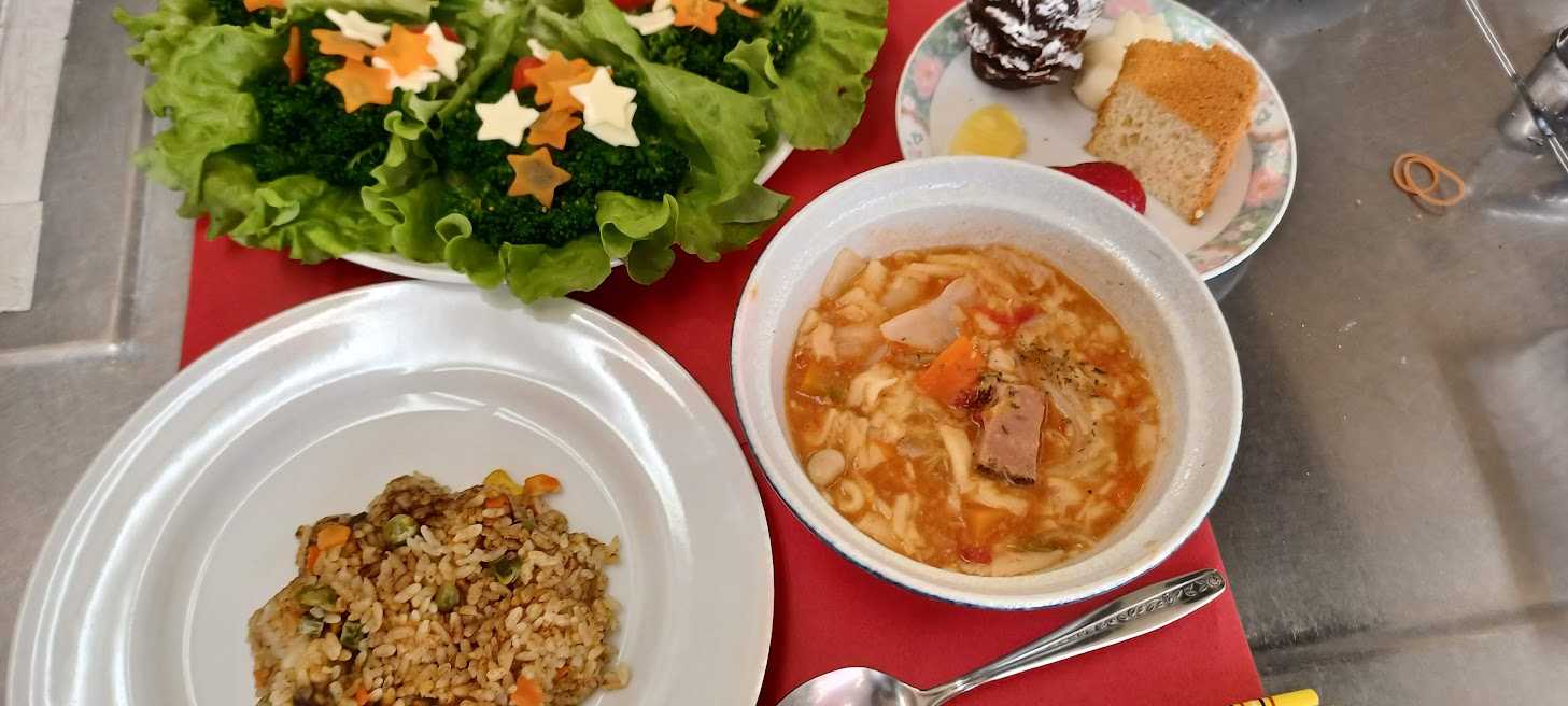 月一回ですが・・今月もやりました。参加者を少なくして・・クリスマスバージョンですミネストローネ、サラダ、カレーピラフ、ケーキも二種類。美味しくできて良かったぁその後イタリア音楽を歌うを聞いてきました知り合いがいたので。皆さん頑張ってました。夜はボランティアの忘年会でした。 良かった