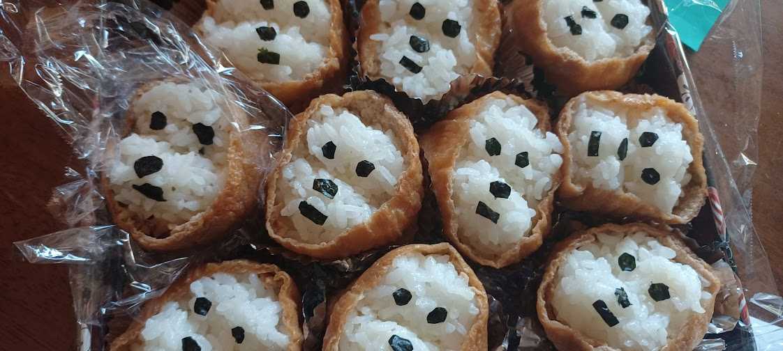 月一回ですが行ってます。今回も朝から忙しく動いてた。と言ってもおやつを作るため。海苔で目と口、鼻を海苔でカットしたからです。お稲荷さんにご飯を入れ・・ワンちゃんを作ったのです。10人分作ってよかったです。まにあったぁ皆さんから美味しいと言われたが・・ わかったかな?