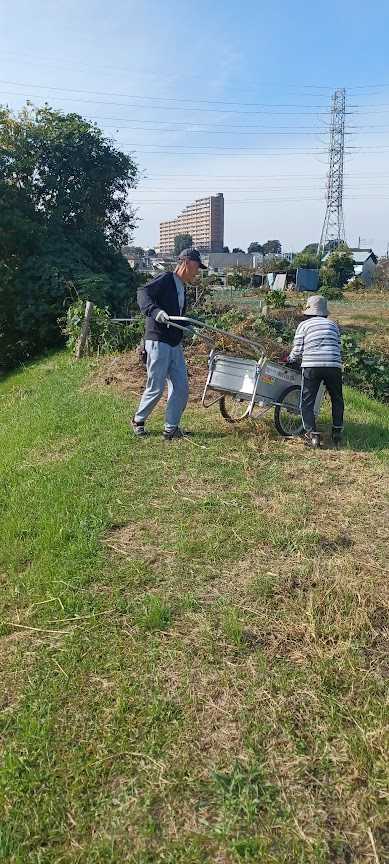 合流地の管理の日!穏やかな秋空でした。コスモスも青空に会います~皆さん思い思いの作業を。トロは草刈り機を使ってました!皆さんの努力で綺麗になりましたね。 お疲れ様