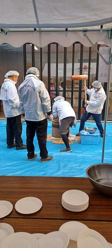これは23日の事です。朝からライオンズの方々と・・お餅つきのお手伝いをしてきました。我々はM会での参加。ついたお餅をちぎっては ・・餡、黄な粉、辛みと3種類に分け売ったのでした。初めに餡が完売。我々も先に食べていて良かったと。 久々のお餅つきでした