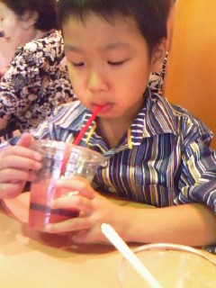 以前は JRの緑の窓口 でしたが変わって、お店になり、ここで生グレープを飲んでいる孫ちゃんです、苦い、すっぱいと言いながら飲んでました。