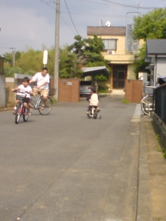 乗っていたら近所のお孫さんも自転車を持ちだして・・