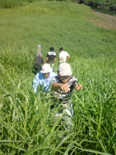 ここの土手にも 夏草 が生えて・・・