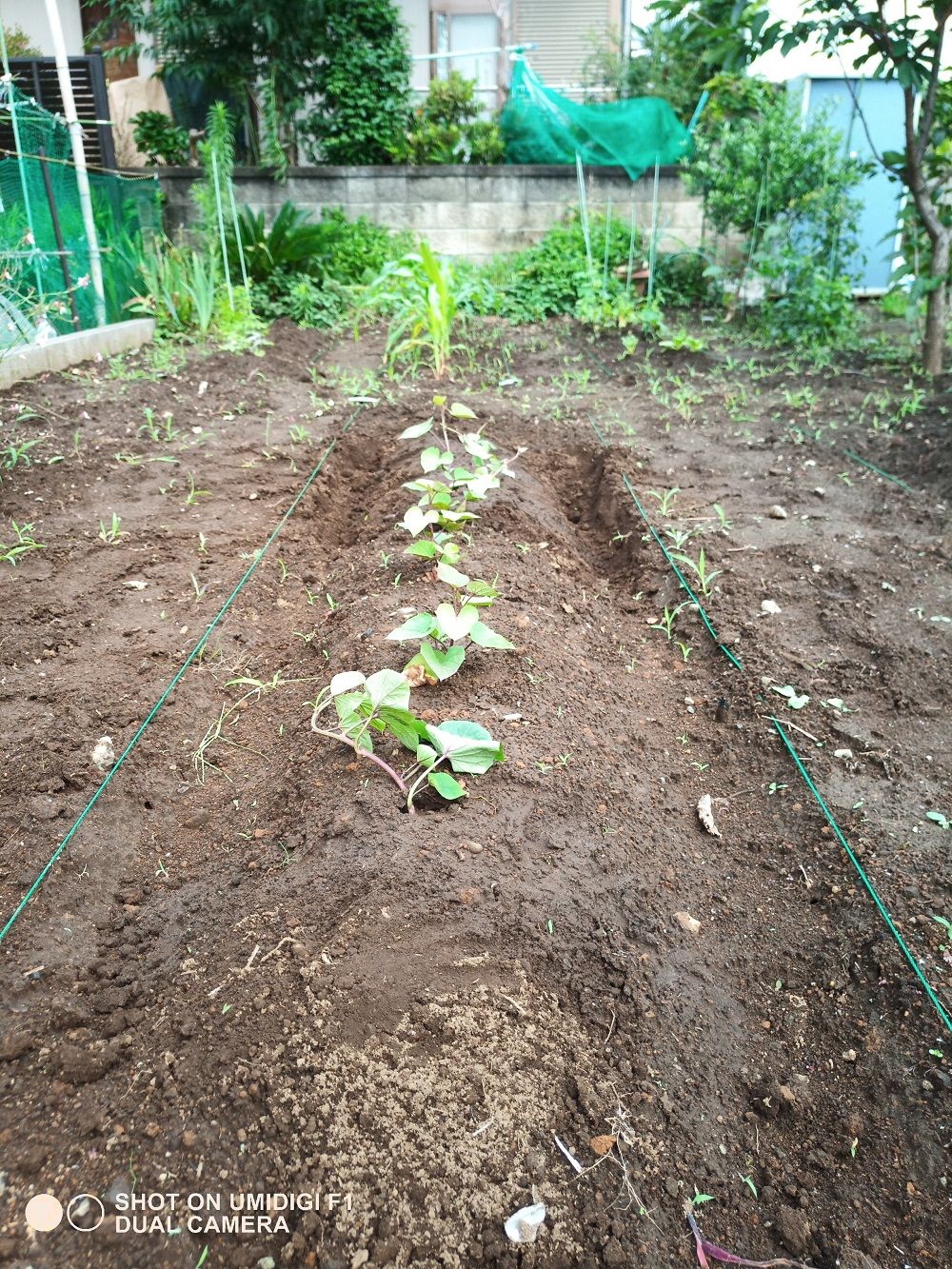 スーパーで買ったサツマイモから苗を育てて、植えたものです。スクスクと育っています。