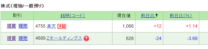 Zホールディングは、下落。もう少し頑張って欲しかった。明日に期待。