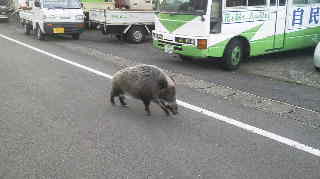 たのは、なんとイノシシ。