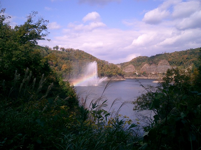 昨日、ふと思い立って、紅葉狩りに行こうと末娘を誘いました。他の家族はすでにそれぞれ出かけていて、山に登っていた僕と、風邪気味だった末娘だけが家に残っていたのです。僕もこの日は、おとなしく家にいるつもりだったのですが、山に登ったとき、あまりにも良い天気で、空気もきれい。末娘も家でじっとしているよりは良いかもしれないと勝手に決めて出かけました。車で1時間ちょっとのところに、帝釈峡という名所があります。まずはそこを目指しました。が、どうも道々、山の紅葉はまだ早い様子。帝釈峡はまだまだ寒いところなので、来週あたりが見ごろかな。。で、急遽予定変更して、途中にある灰塚ダムというところに行きました。丁度、第何期かの竣工式ということ。特別開放ということで、ダムの中の見学も出来ました。午後からは中西圭三のコンサート。僕が行ったときは、その前座を務めるバンドが練習中。久々に生の音を聞くことが出来ました。紅葉にはまだ早かったけれど、ダム湖のきれいな虹を見ることが出来ました。我が家からこのダムまで、車で西に約30分弱。南に同じくらい走れば、春先にマラソン大会に出た八田原ダム、東南に40分ほど走れば、今度ハーフマラソンに出る土師ダムがあります。森、水、山に親しもうと思えば、とても贅沢な場所に住んでいるんだということを、ついつい忘れていたような気がします。