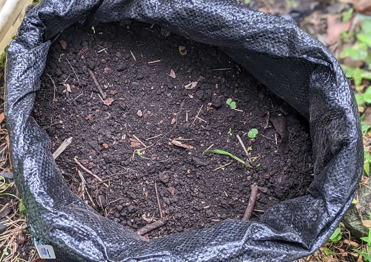 生ゴミとか、野菜の残渣で堆肥を作りたくて、土嚢袋に詰めています。10月30日、完熟堆肥作りをする10月30日に入れた有機物の一部です。下の今日の写真を見ると、ずいぶん分解が進みました。キッチンペーパーや、青物の生ゴミは分解が速そうです。土はトマトを栽培していた土を使いました。30日に入れたのは、トマトの枝や葉っぱ、生ゴミ、落ち葉などです。卵の殻もできるだけ細かくして入れています。今回の中身を開けました。ニオイがあまりしません。鼻を近づけても、あんまり臭いません。腐敗臭はありません。何だか、土がほわっと温かく感じます。トマトの枝などの有機物は、崩れずにあります。10月22日に仕込んだ袋は、いい香りがしました。22日の袋は、イネ科の草を多めに混ぜたせいか、土壌菌の種類が違うようです。これにえひめaiをかけます。甘酸っぱいニオイがするえひめaiです。カップ半分ほどを、薄めずに掛けます。これで、乳酸菌と酵母菌、納豆菌が足されました。かき混ぜて、袋に内容物を戻しました。黒い袋を被せて、また養生します。一か月後は、もっと分解が進んでいると思われます。ーーーーーーーーーーーーこちらは土嚢袋に、土と有機物を詰めて、二ヶ月養生した土嚢袋です。一度切り返しをしました。それからさらに一ヶ月が経っています。一度虫に食われて失敗したエンドウ豆ですが、二度目の豆の栽培が順調です。嬉しいです。