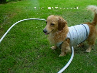 摩耶さん 主人の腕に捕まり逃げれません状態小さいお脳で考えた・・・・考えた結果 ZZZZZZZZZ・・・・現実逃避??? (●´艸`)フ゛ハッ お目目パッチリ!!小さいお脳で脱走計画中・・・・東矢くんの呆れ顔・・しばらくして 脱出成功!! おかんの意地悪!!って顔して~夕方 庭で 毎回恒例となりました 庭の水まきTIMEに摩耶さん大はしゃぎ!!摩耶!東矢の冷たい視線感じない?ウッハァ~~( ̄▼ ̄|||) ビタビタビッタンコだぎゃ~~!!あ、あの~~ 摩耶さんもうやめて~~ と思ったとき東矢くん注意しに近づいてみたが やめ”でくで~~!!濡れるのが嫌いな東矢くん ちょっと水がかかって 大慌てで逃げてきました説得に行ったんじゃないのぉ~??摩耶さんは 全身ビッタンコになるまで 遊んでましたわ~~~ また 明日も水浴びするんだろうなぁ・・・ハァ━(-д-;)━ァ... まっ、いいんだけどね・・・・・