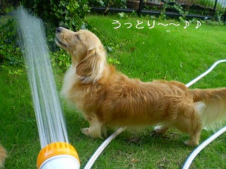 庭の水まきの時間がやってまいりました雷がゴロゴロと鳴ってはいるものの 雨が降る気配が全くないので 水まきしますか!!水まきといえば ハイハイ やって参りました摩耶さんです同じネタばかりですが ちょいと見てやってくださいな うっとり中♪ついて歩いてますわ~~摩耶さん 水を飲む動画はこちらへ東矢くんも参戦?するけど やっぱり濡れるのがお嫌な様子で・・・摩耶に呆れ顔ですわ・・飽きないわね~~~ ほんとにまぁ・・・・ご近所の元ケーキ職人のおじちゃんから頂きました~~夏はひんやりしたゼリーよねッ!!えっ!1個足りない??そう 待ちきれない主人が1個食べてしまいましたお味は さっぱりして喉越し爽やかで 美味しかったですよ~~♪♪♪