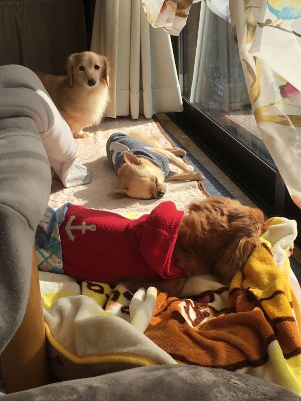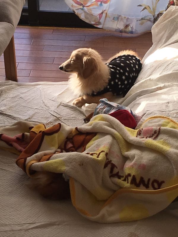 今日は 朝から ご機嫌に 食べてくれた 散歩も 少し長く歩けて 点滴を 娘にうってもらって 軽くオヤツも食べた 満足すると ソファーで 背中をゴロゴロする姿も 久々に見れた 当たり前の事が とても嬉しい