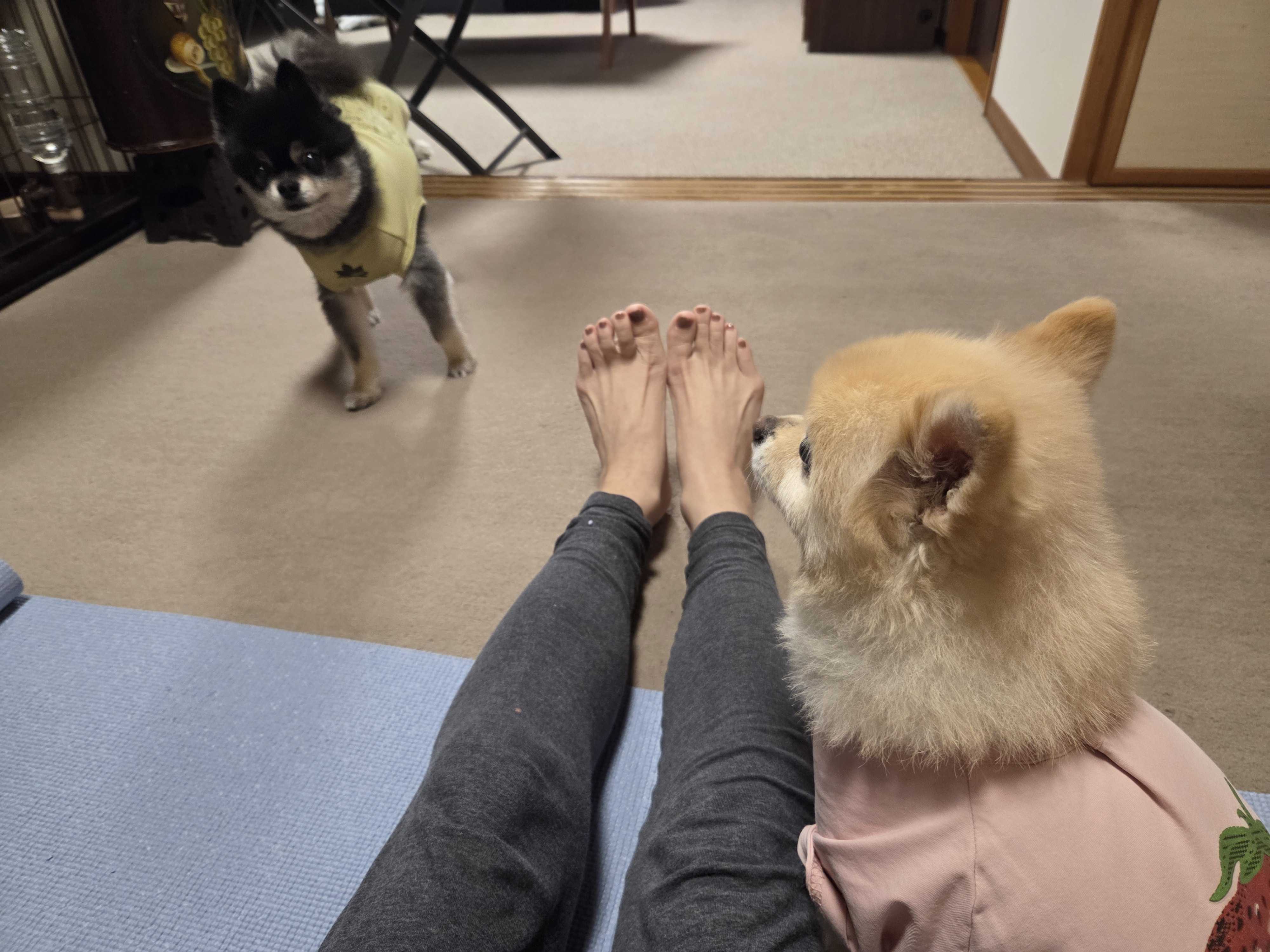***いつもご覧頂きありがとうございます***◇◆◇◆冷たい雨が降ったり止んだりの落ち着かない天気になっておりました。パパちゃんが風邪をひいてしまいダウン中なので 家で静かに過ごしています。クィーンズ駅伝みたり、大相撲千秋楽みたり暇ではありません。(笑)日課のヨガをしようとヨガマットをしきストレッチをはじめるも、メルジルが邪魔してきて、こら!こら!言っても無駄なようです😅※今日の独り言※運動妨害だよ~。足先触ると冷たいわ~。足の指思うママに動かせますか?わたくしは、中指をうごかそうと指令を出すのですが、中指が思うように動きません。あなた様はどうでしょう?こらこら、邪魔しないでよ~メルモちゃんまっ、いっかーーー。最後迄読んで下さりありがとうございます。あなた様にとりまして楽しい1日になりますように。また🍀