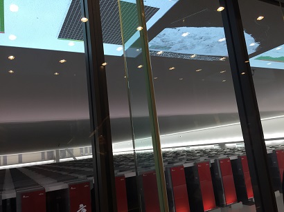 天井には稼働状況の画面が投影されており、見学者にも動作状況を感じれるように配慮されていた。