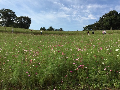 みんなの広場のコスモスはかなり満開に近づいて来たが、花の丘はまだもう少しだった。