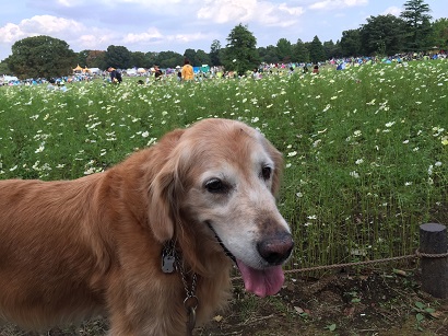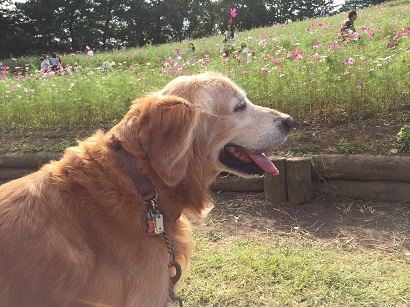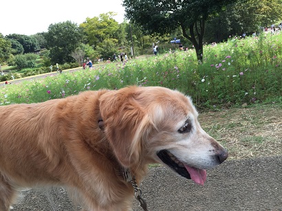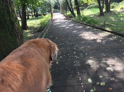 ハァハァ言いながらも、アロは散歩がうれしそう。