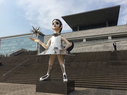 運河から見える場所には7メートルの巨大オブジェが仁王立ちしていた。