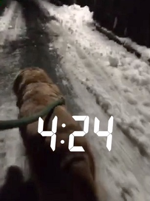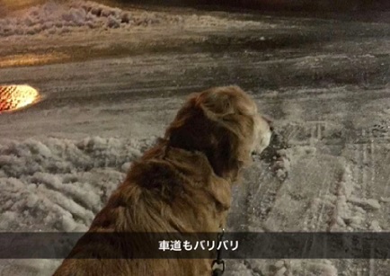 アロは若いころなら雪の中を走り回っていたが、雪がないところを選んで歩いているように思う。