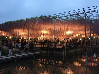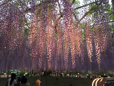 そうこうしているうちにライトアップの照明がさえだしたので、藤棚見物にGOだ。