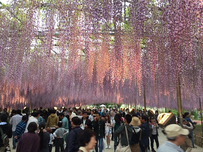 ここは最近よくTVで紹介されている、藤のライトアップが有名で外国人の人気が高いらしい。