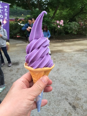 なんとも毒々しい色だが、ソフトクリームというよりシャーベットに近い舌触りだが、味はすっきりとおいしかった。