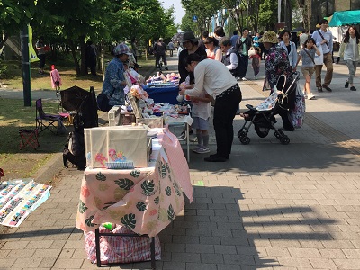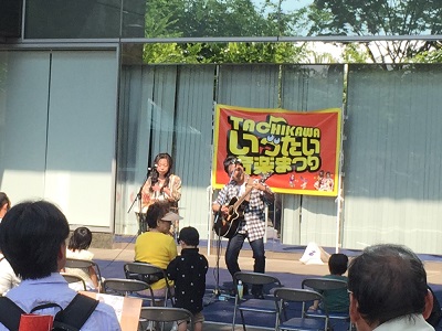 公園につく前のサンサンロードでは、なにやら音楽祭らしくアマチュアバンドの演奏や売店が開かれていた。
