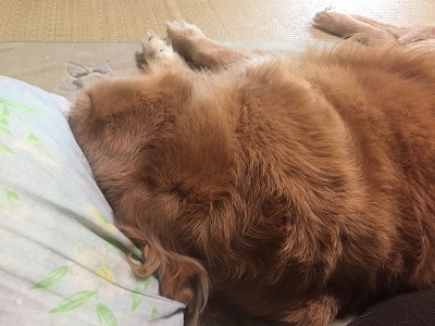 アロもこの時期の散歩はすぐにグロッキー気味で、家に着くとドスンと寝ていた。
