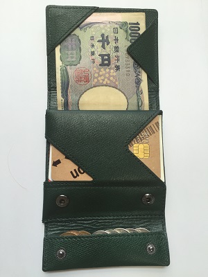 しかし特徴は可能な限り、革の重なりをなくし、さらに、コインと紙幣が重ならない工夫がされている。
